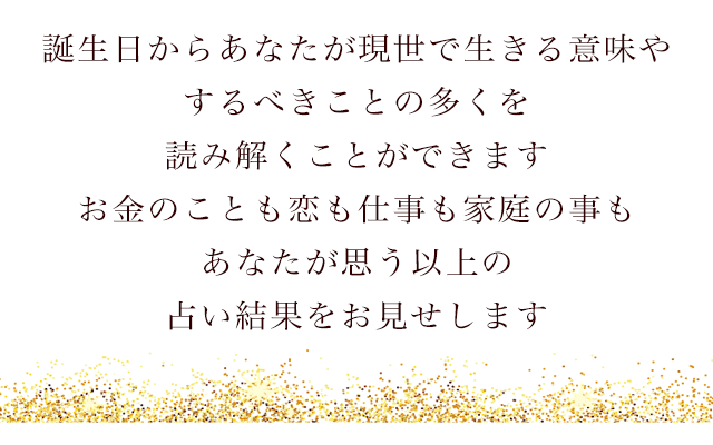 誕生日からあなたの運命を知ることで、今後の人生であなたがより幸せに生きていくための方法を占います。